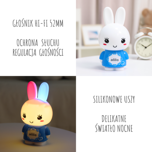 Poznaj Alilo Big Bunny – rewelacyjny odtwarzacz MP3, dyktafon, lampkę i głośnik do komputera dla dzieci w każdym wieku.