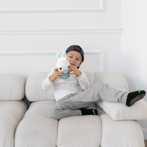 Specjalny przycisk umożliwia włączenie kolekcji kojących dźwięków, które obniżają i blokują głośność króliczka (żeby przypadkowo nie zwiększyć jej przy zasypianiu dziecka) – króliczek sam wyłączy się wtedy po 30 minutach.